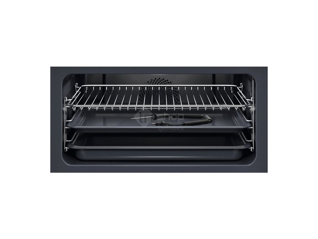 | Výbava trouby - plechy: | 1 smaltovaný koláčový plech na pečení, 1 odkapávací pekáč šedý smalt |