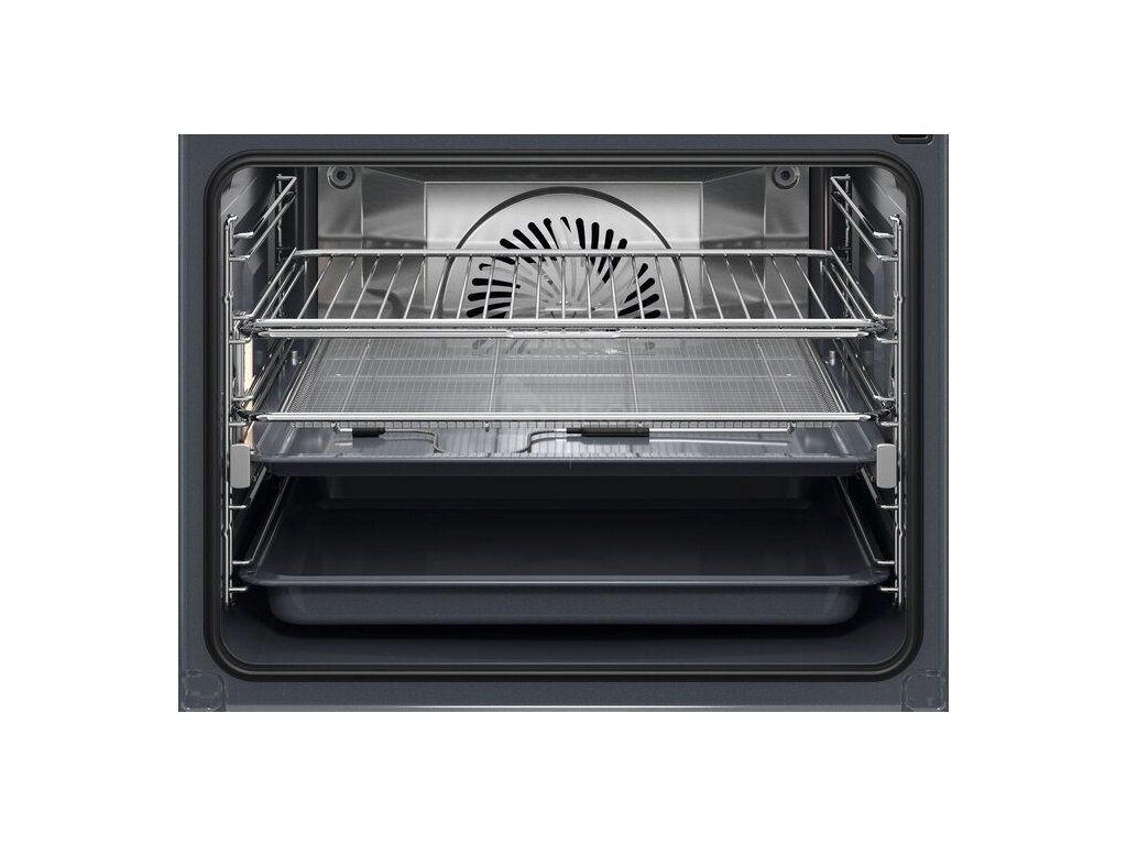 - Možnost elektronického nastavení trouby: Display Full colour TFT touch 4.3 inches 9 x 5, 135 Variety of pre-set cooking programmes 'Assist', 12 Multi Step Cooking Functions, 25 Languages / Textdisplay, 5 Cleaning programs (steam cleaning, steam cleaning plus, descaling, drying, rinsing), akustický signál, ovládání aplikací, automatické vypnutí (jen trouby), nastavení hlasitosti minutky, Check Result (Finish Assist by remaining 10% duration) ('Use residual heat' screen + beep), Dětský zámek, minutka pro čištění, Clock automatic adjustment, Clock style in standby (2 versions: digital, 7 segments), konektivita, čas vaření, čas vaření s odhadem konce, přičítání času, demo program s kódem, nastavení jasu disp., Short cut keys in standby screen, doporučená teplota, denní čas, nastavení tvrdosti vody, Residual heat usage (only with duration), info k servisu, hlavní vypínač, denní paměť 3 dny zpětně, minutka, OTA programming (excluding power board), Oven light on/off selectable (2 ways: menu, direct access on home screen), Preheating (none, eco, fast), ukazatel teploty (°C), ukazatel zbytkového tepla, elektronická regulace teploty, Electronical door switch, výběr rychlého předehřátí, jídelní sonda, automatické vypnutí jídelní sondy, jídelní sonda - indikace teploty jádra, jídelní sonda s odhadem času, tóny kláves, alarmů a chyb, aktivace/deaktivace (kromě hlavního vypínače)