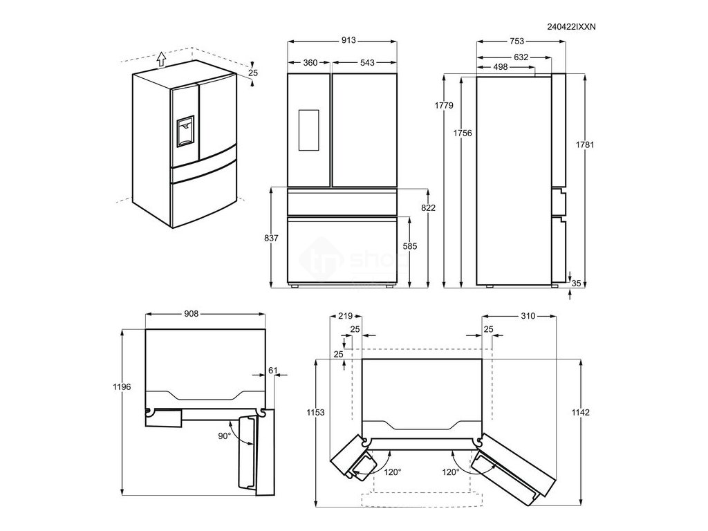 - Rozměry spotřebiče VxŠxH (mm): 1781 x 913 x 753