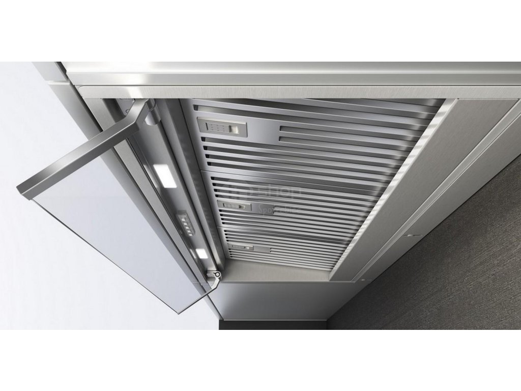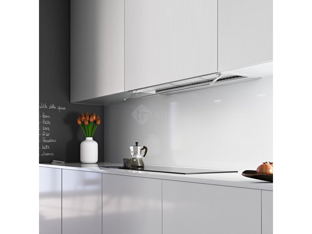 Originální vestavná digestoř vybavená výkonným motorem s nízkou spotřebou elektrické energie.