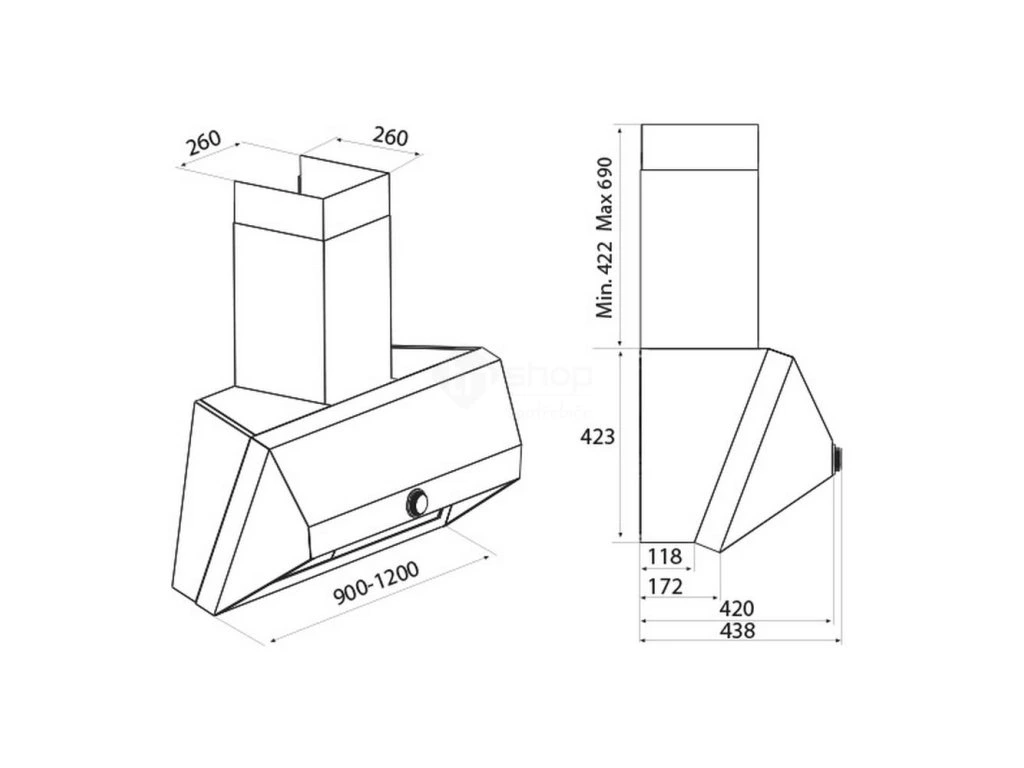 Odsavač je standardně dodáván v odtahové verzi, součástí základní výbavy digestoře je černý teleskopický komín a zpětná klapka, v případě recirkulačního provozu je nutné k digestoři dokoupit uhlíkový filtr.
