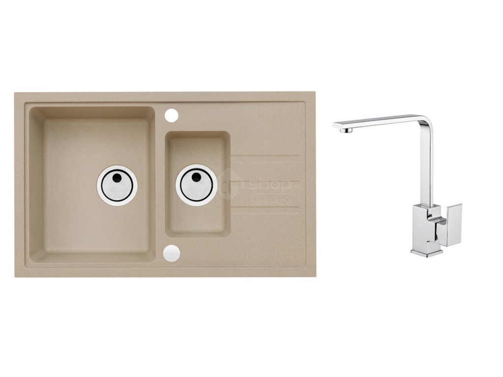Vestavěný dřez, univerzál. Provedení : granitový dřez Vnější rozměr: 780x480 mm Rozměr vaničky: 330x405x200 mm Rozměr vaničky: 170x275x130 mm
