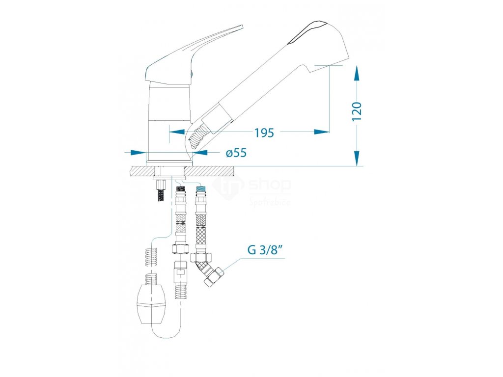 - Baterie AM 20 Vysokotlaká baterie otočné ramínko vytahovací sprška rozměr:198 x 150 mm