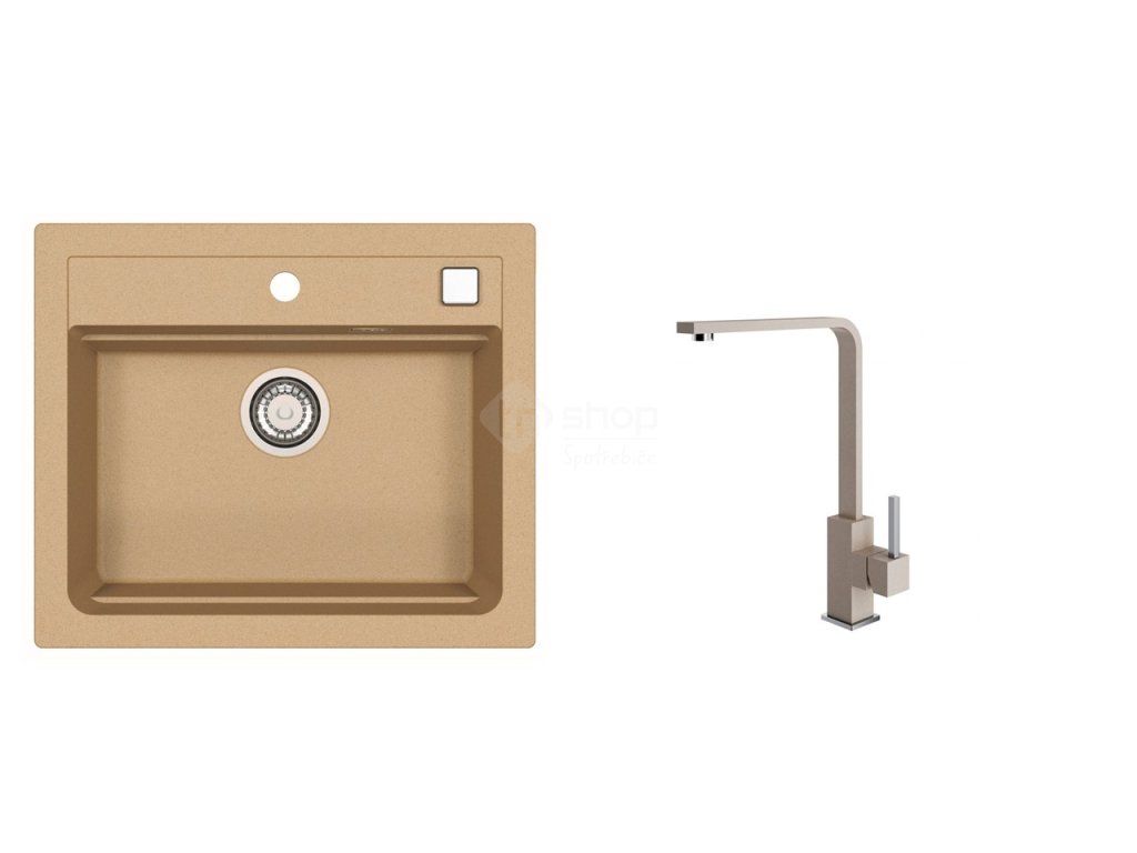 Vestavěný dřez, univerzál. Provedení : granitový dřez s odkapem Vnější rozměr: 590 x 500 mm Rozměr vaničky: 510 x 340 x 195 mm
