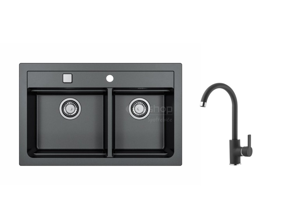 Vestavěný dřez, univerzál. Provedení : granitový dřez s odkapem Vnější rozměr: 790 x 500 mm Rozměr vaničky: 390 x 340 x 195 mm 300 x 340 x 145 mm