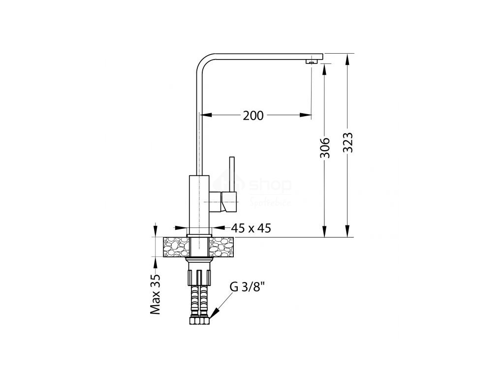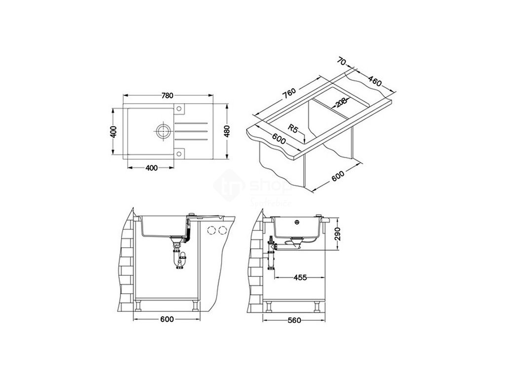 Vestavěný dřez, univerzál. Provedení : granitový dřez s odkapem Vnější rozměr: 780 x 480 mm Rozměr vaničky: 400 x 400 x 180 mm