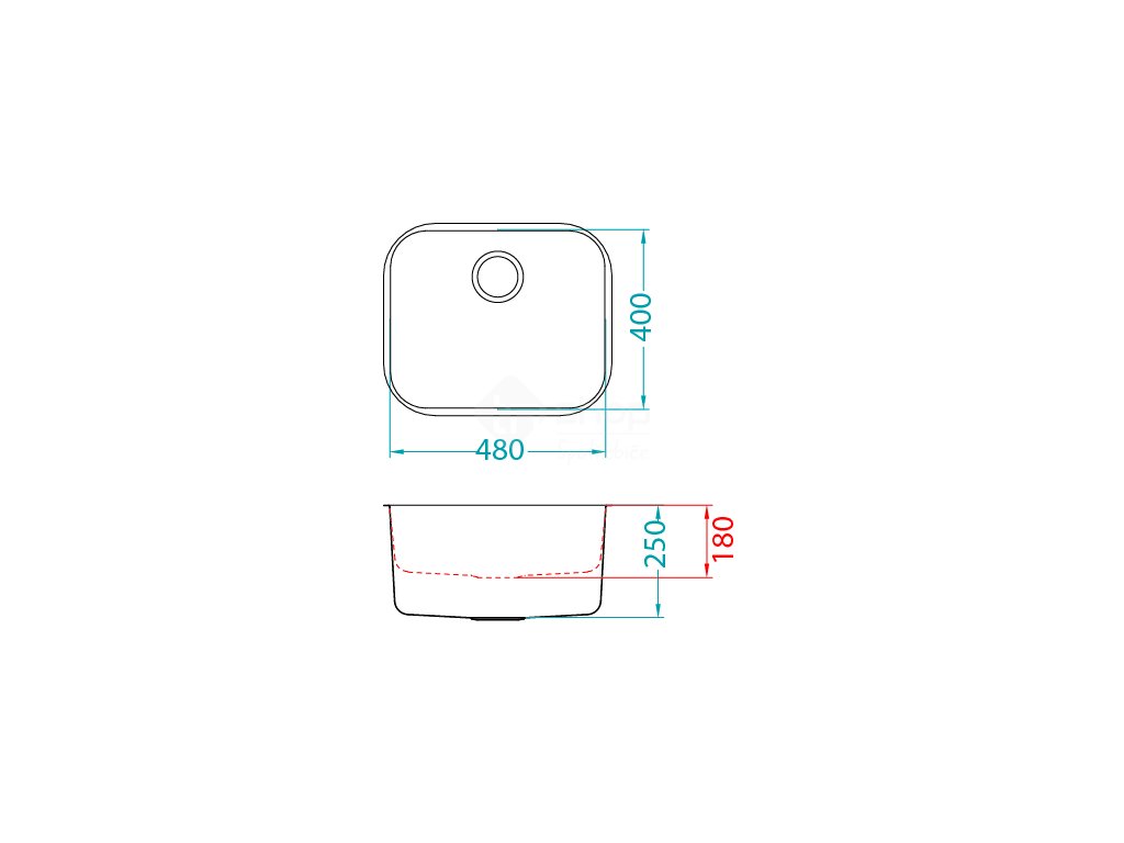 Vestavěný dřez Provedení : nerezový dřez Rozměr vaničky: 480 x400 x185 mm