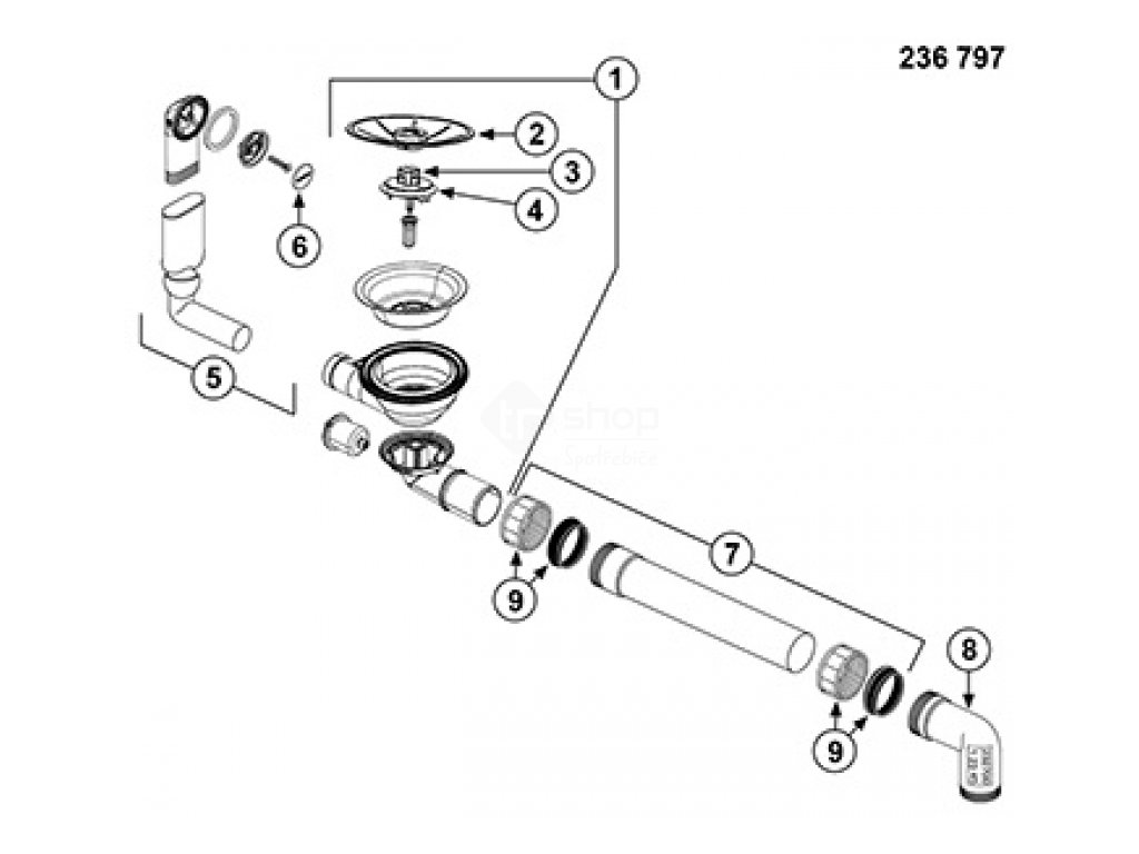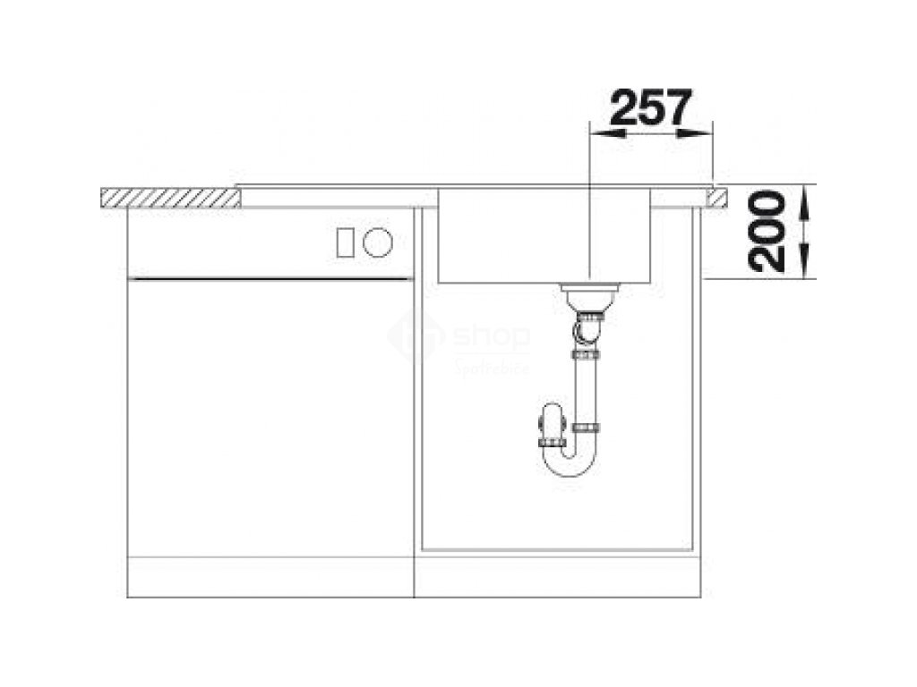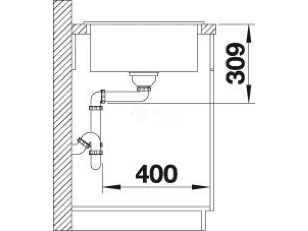 - Odtoková armatura 3 1/2 "InFino® výpusť se sítkem, zápachový uzávěr s odbočkou pro myčku