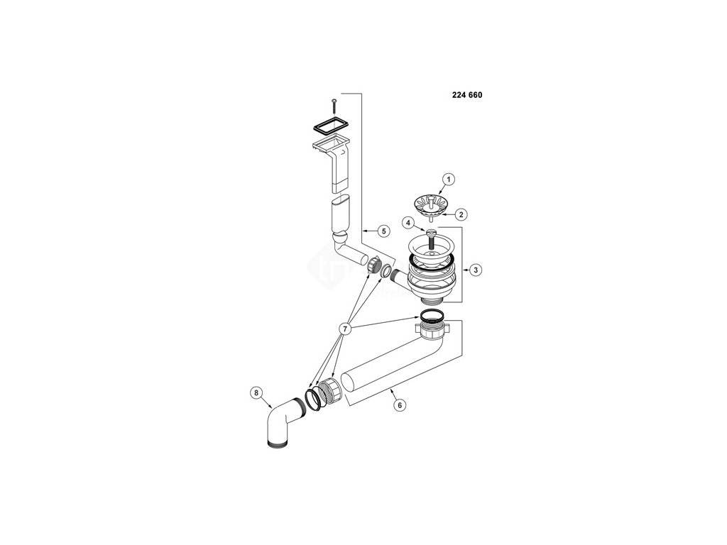 odtoková armatura s prostorově úspornou trubkou, ventil 3 1/2"