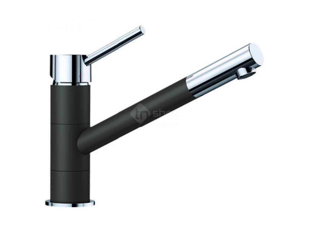 Kombinace silgranit/chrom povrch • Štíhlá baterie s estetickým designem • Obzvláště určeno pro kompaktní dřezy • Rozšířený akční rádius díky otočnému raménku 360°