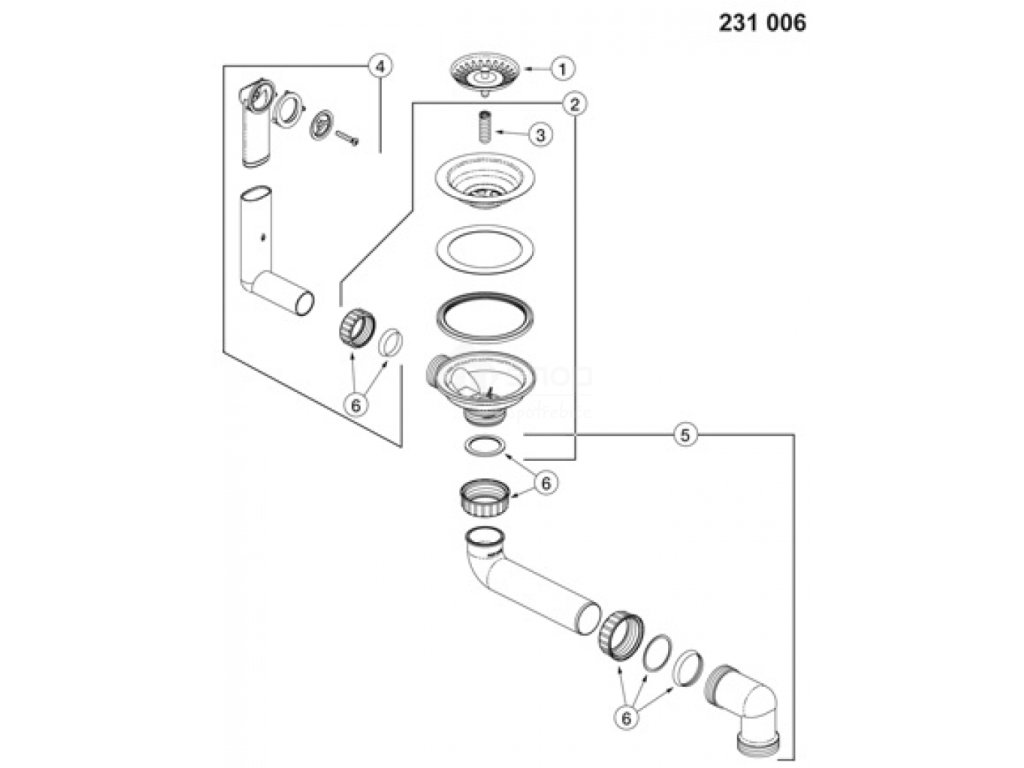 - odtoková armatura s prostorově úspornou trubkou, dva 3 1/2‘‘ ventily