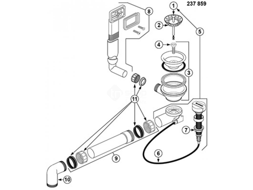 - odtoková sada s prostorově úspornou trubkou, 3 1/2‘‘ sítkový ventil s excentrickým