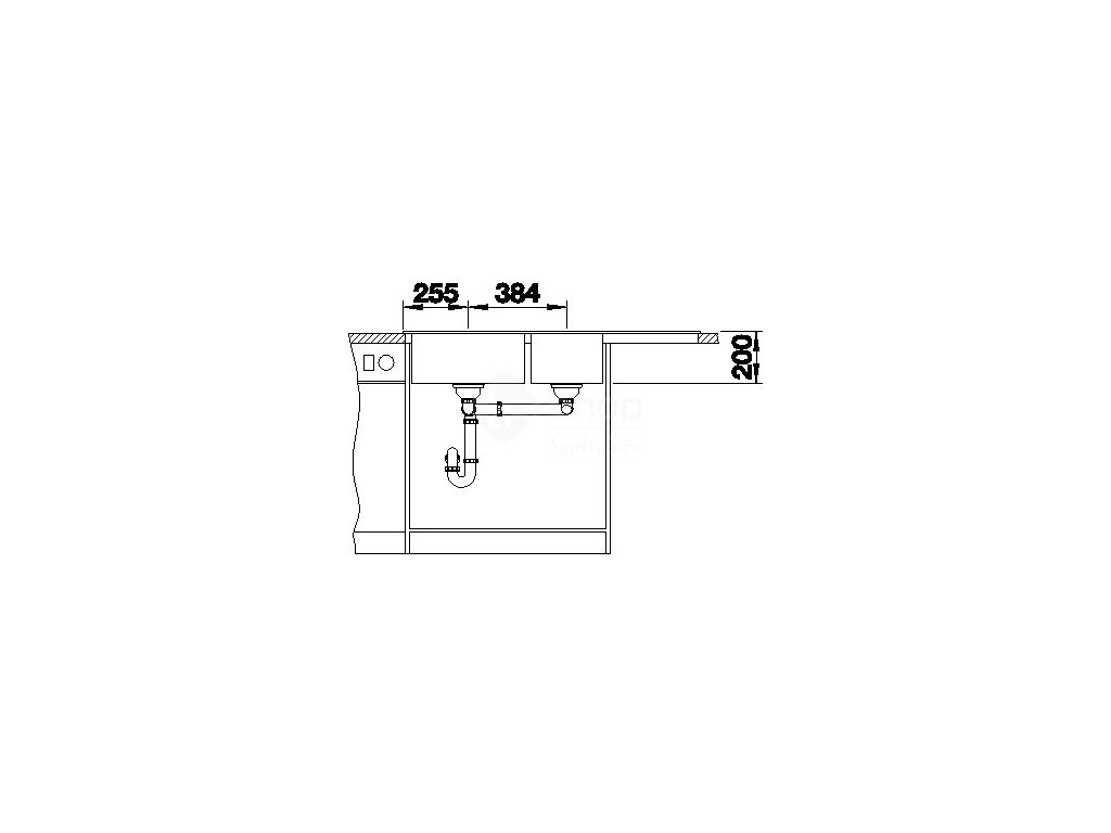 Velkoryse řešený hlavnídřez i vedlejší vaničky. Funkčně navržena odkapávací plocha. Prostor pro mísicí baterii a dávkovač mýdla. Pro 80 cm spodní skříňky