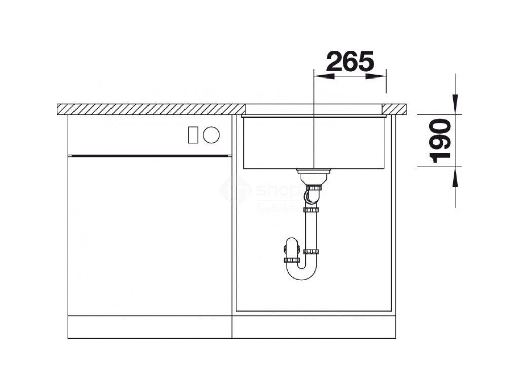 Dřez vpravo do roviny s pracovní deskou „ F „ - bez příslušenství