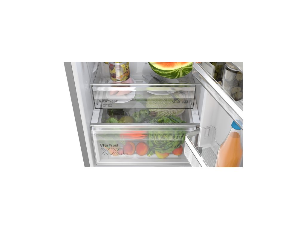 Prostorný systém VitaFresh XXL & nabízí ideální prostředí pro skladování vašich čerstvých potravin. Udržuje teplotu blízko 0 °C pro maso a ryby a k dispozici je zásuvka s řízeným klimatem, která uchová vaše ovoce a zeleninu skutečně čerstvé.