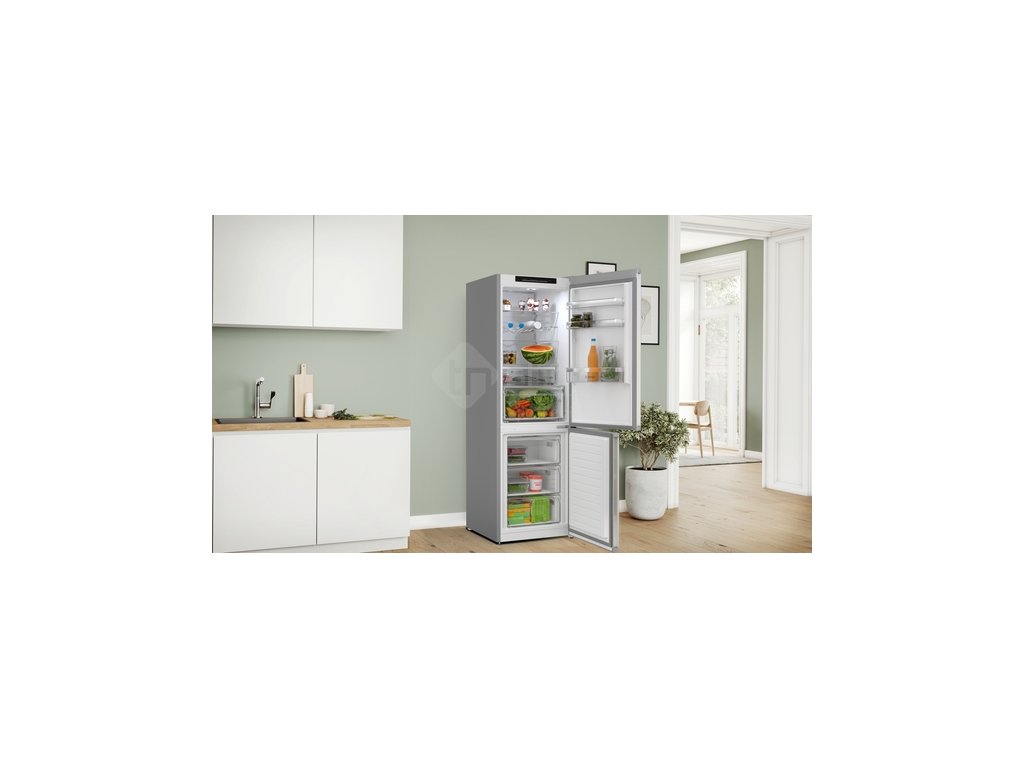 Serie 4, Volně stojící chladnička s mrazničkou dole, 186 x 60 cm, kovový vzhled, Total No Frost