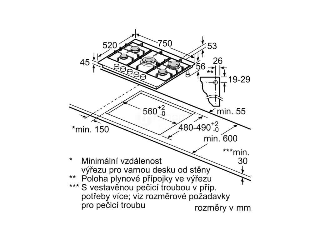 Serie 6, Plynová varná deska, 75 cm, nerez