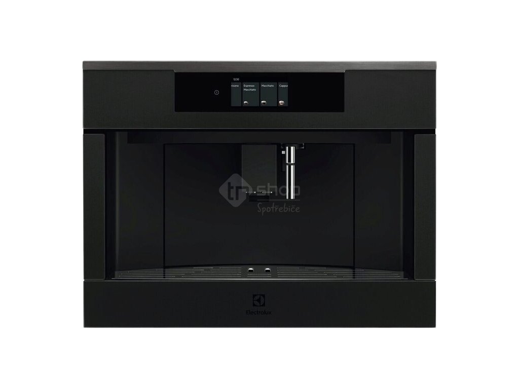 Vestavný kávovar; Electrolux 800 KBC95T; Výška (cm): 45; Ovládání: Elektronické, dotykové, Cook Smart Touch; Kapacita mlýnku na kávu (g): 350; Objem nádrže na vodu (l): 2,5; Automatická funkce na přípravu espressa: Ano; Automatická funkce na přípravu cappuccina: Ano; Podsvícení kávovaru: Ano; Barva: Matt Black; Vybavení: Termokonvice až na 6 šálků kávy; nádobka na mléko; Rozměry VxŠxH (mm): 450x560x550; 5 let záruka na celý model: Ne
