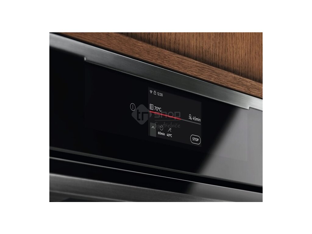 - Možnost elektronického nastavení trouby: Display Full colour TFT touch 4.3 inches 9 x 5, 135 Variety of pre-set cooking programmes 'Assist', 12 Multi Step Cooking Functions, 25 Languages / Textdisplay, 5 Cleaning programs (steam cleaning, steam cleaning plus, descaling, drying, rinsing), akustický signál, ovládání aplikací, automatické vypnutí (jen trouby), nastavení hlasitosti minutky, Check Result (Finish Assist by remaining 10% duration) ('Use residual heat' screen + beep), Dětský zámek, minutka pro čištění, Clock automatic adjustment, Clock style in standby (2 versions: digital, 7 segments), konektivita, čas vaření, čas vaření s odhadem konce, přičítání času, demo program s kódem, nastavení jasu disp., Short cut keys in standby screen, doporučená teplota, denní čas, nastavení tvrdosti vody, Residual heat usage (only with duration), info k servisu, hlavní vypínač, denní paměť 3 dny zpětně, minutka, OTA programming (excluding power board), Oven light on/off selectable (2 ways: menu, direct access on home screen), Preheating (none, eco, fast), ukazatel teploty (°C), ukazatel zbytkového tepla, elektronická regulace teploty, Electronical door switch, výběr rychlého předehřátí, jídelní sonda, automatické vypnutí jídelní sondy, jídelní sonda - indikace teploty jádra, jídelní sonda s odhadem času, tóny kláves, alarmů a chyb, aktivace/deaktivace (kromě hlavního vypínače)