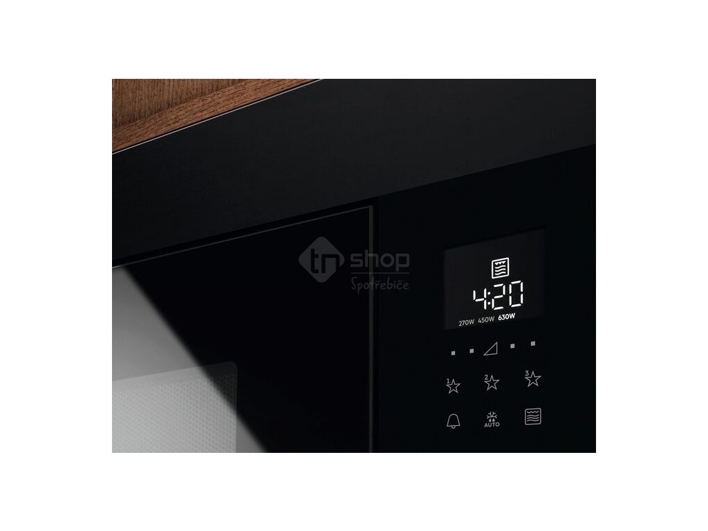 Vestavná mikrovlnná trouba; Electrolux 600 Grill LMF4263TET; Výška (cm): 39; Funkce: Mikrovlny / Gril; Čistý objem (l): 25; Ovládání: Elektronické; Počet úrovní výkonu: 8; Mikrovlnný výkon (W): 900; Výkon grilu (W): 1000; Barva: Černá/Nerez s povrchovou úpravou proti otiskům prstů; Rozměr VxŠxH (mm): 388x595x377; 5 let záruka na celý model: Ne