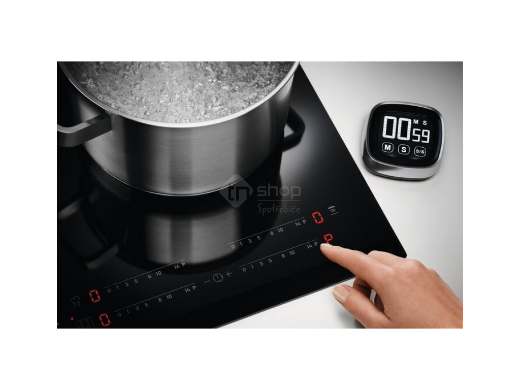 Díky nastavitelnému časovači můžete lépe a pohodlně sledovat průběh přípravy jídla. Signalizuje přesnou dobu vaření a lze ho nastavit až na jednu hodinu. Po uplynutí stanového limitu se příslušná zóna automaticky vypne. Funguje také jako minutka, když varnou desku nepoužíváte.