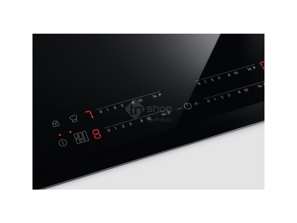 Kontrolní funkce: | 3 krokové využití zbytkového tepla, akustický signál, automatické zahřátí, funkce POWER (Booster) = rychlé ohřátí, dětský zámek, přičítací časovač, Eco časovač (využití zbytkového tepla), flexibilní Power Management, propojen s odsavačem Hob2Hood, zajištění/odjištění ovládacího panelu, minutka, pauza, vypnutí zvuku, ukazatel času |