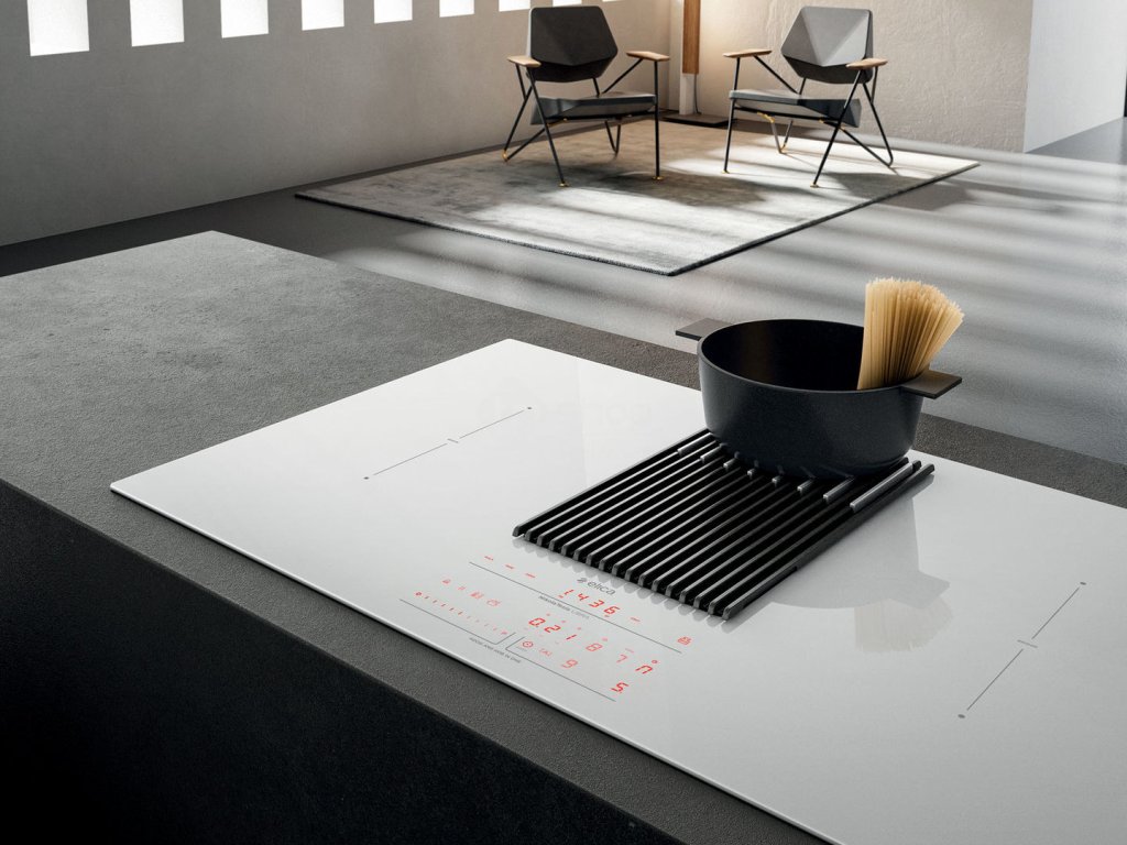 ELICA NIKOLATESLA LIBRA EVO nová varná deska s integrovaným odsavačem par od Elica navržená designérem společnosti ELICA FABRIZIO CRISA představená na veletrhu EUROCUCINA 2024