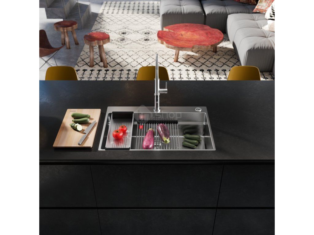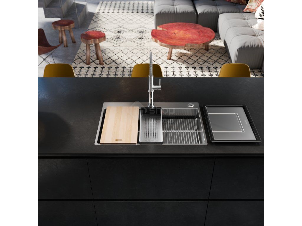 - V ceně dřezu doplňky: miska, přípravná deska a rolovací rošt