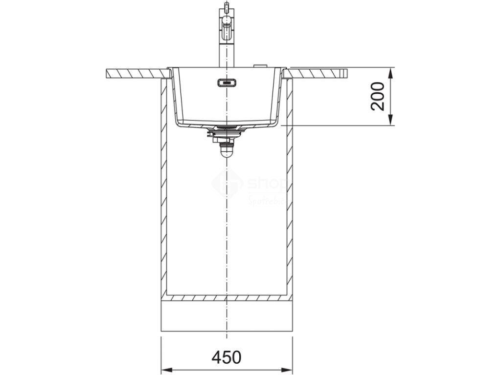 - Výřez: 370 × 400 mm (Rádius 20 mm)