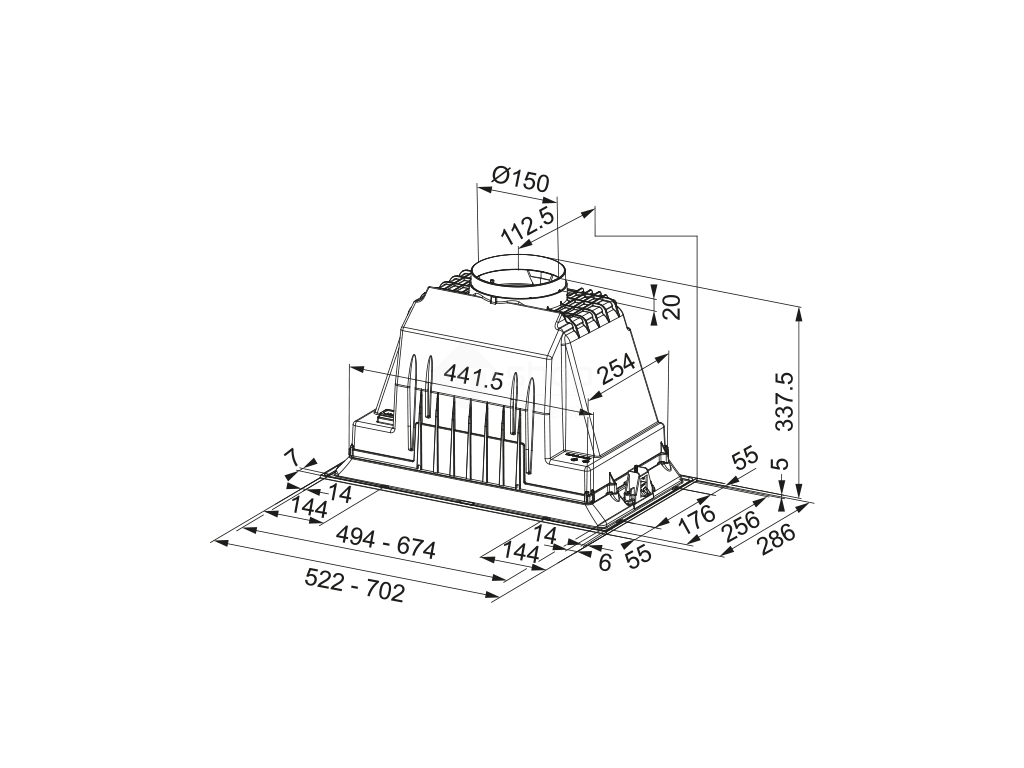 Vestavný odsavač par Box Plus. Provedení nerezový rám