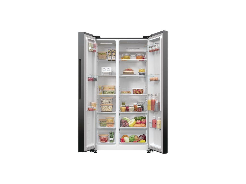 Kombinovaná chladnička s mrazničkou Side by Side, Inverter PowerDrive motor, NOFROST PLUS, LED display, 358/192 l, D, 38 dB, černá ocel, 178,6 × 91 × 64,3 cm