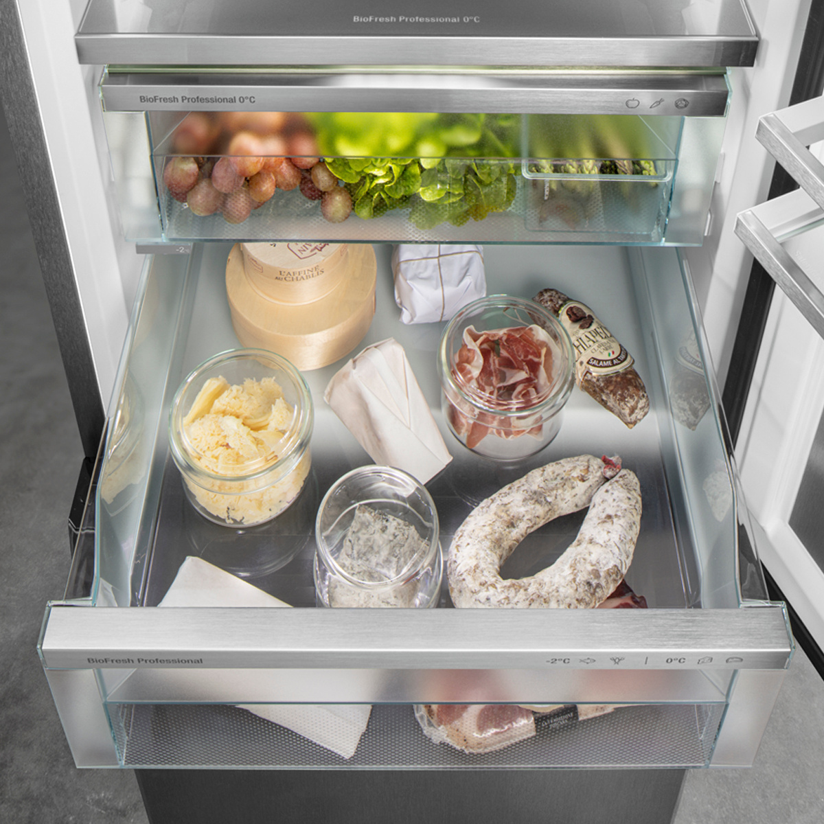 Chtěli byste, aby delikátní telecí filé nebo čerstvé mléko zůstalo čerstvé co nejdéle? O to se postarají přihrádky BioFresh: V přihrádce na maso a mléčné výrobky se teplota blíží 0 °C – ideální podmínky pro skladování i těch nejcitlivějších potravin. A to nejlepší: Všechno je z výroby perfektně nastaveno k okamžitému použití – pro delší čerstvost.
