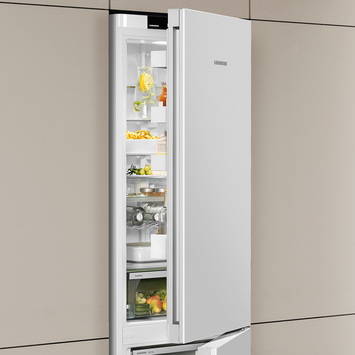 Chcete si uchovat čerstvé, doma upečené ovocné koláče? Nebo připravenou pizzu, kterou chcete dát do trouby až později? Jednoduše zasuňte pečicí plech do své chladničky Liebherr – poskytuje vám dostatek místa pro uložení pečicích plechů. Mimořádně praktické: Pečicí plech můžete zasunout a vysunout při otevření dveří na 90°.