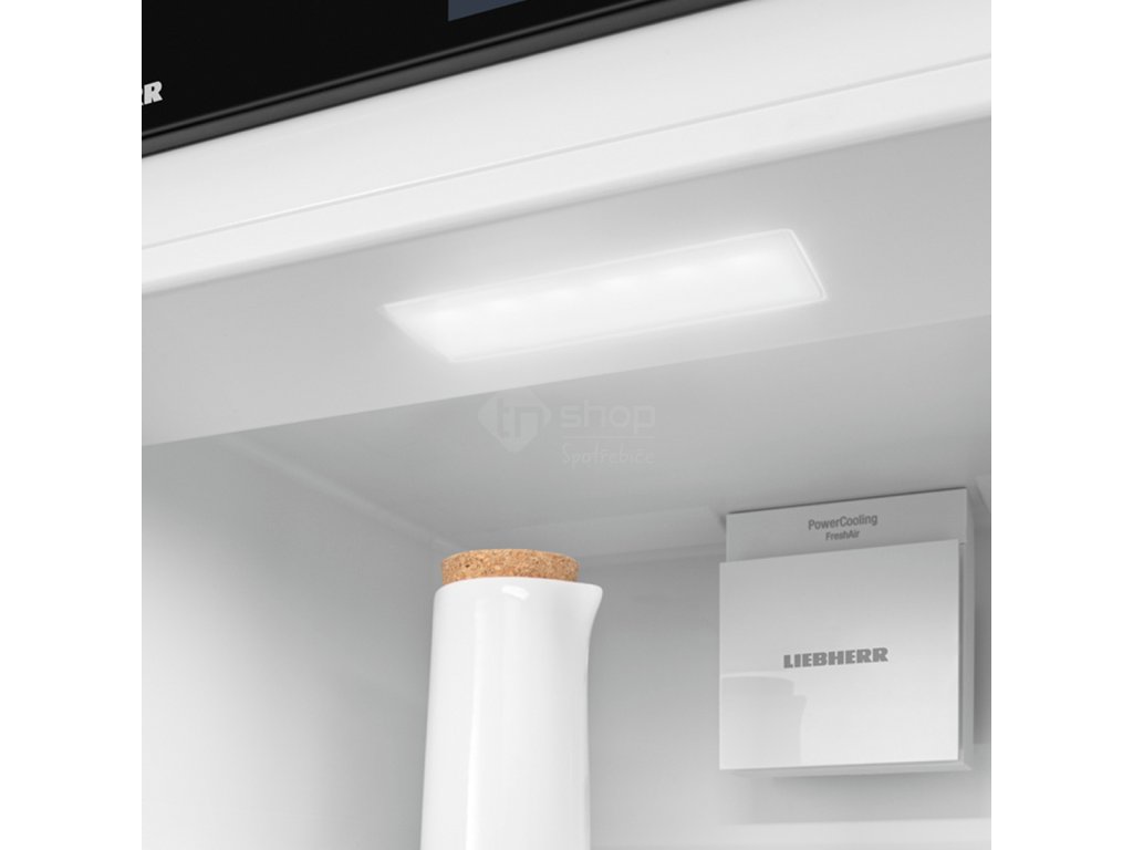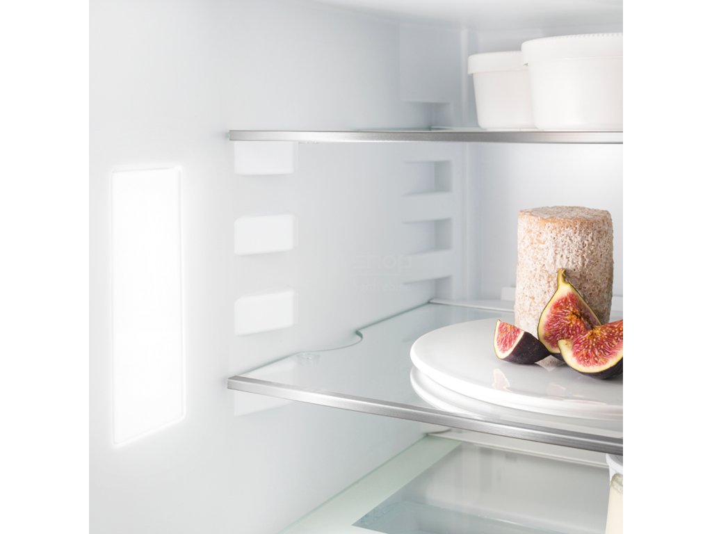 LED stropní osvětlení osvětluje vnitřní prostor seshora – pro dobrý přehled o vašich potravinách. Extra světelný bod: LED jsou umístěny před skleněnými deskami, aby byla dobře osvětlena i plná chladnička.