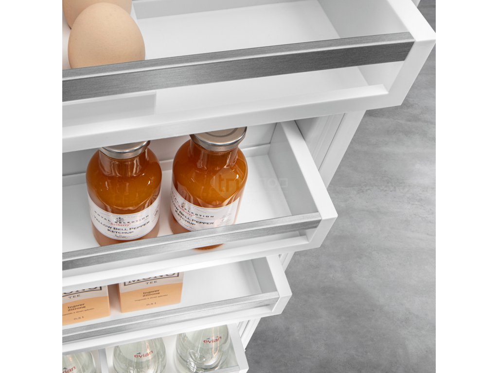 Čisté, světlé a atraktivní – tento dojem budete mít při každém otevření svého spotřebiče Liebherr. To zajišťují mimo jiné transparentní skleněné desky z bezpečnostního skla. Jejich výšku můžete rychle a snadno nastavit jediným pohybem. Atraktivní vzhled dotvářejí ozdobné lišty z nerezové oceli.