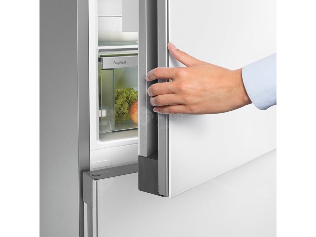 Kombinovaná chladnička s BioFresh a NoFrost, objem 360l (158/99/103), DuoCooling, BluPerformance, FlexCube, TouchDisplay, EasyTwist Ice, integ. SmartDevice, zapuštěné madlo, Bílá, řada Plus.