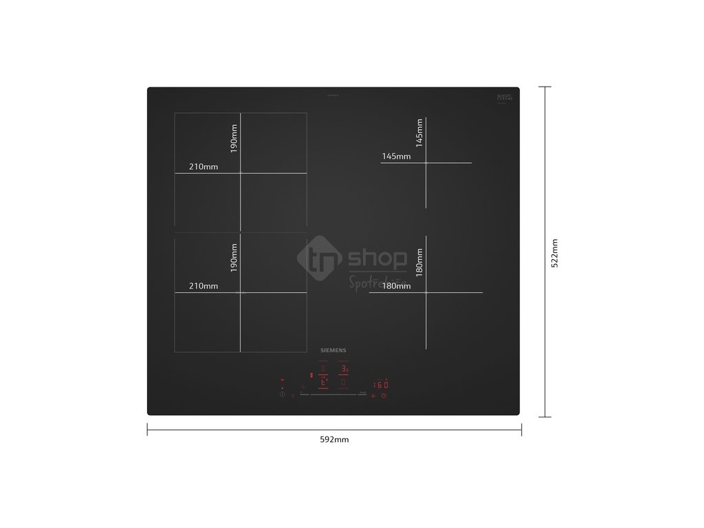 varná zóna, zadní levá: | 190 mm, 210 mm, 2.5 kW (max. výkon 3.7 kW) |
