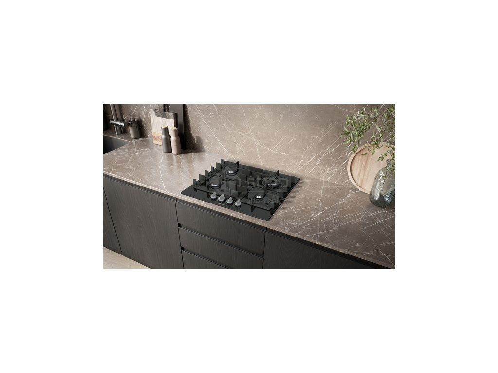 iQ300, Plynová varná deska, 60 cm, tvrzené sklo, černá