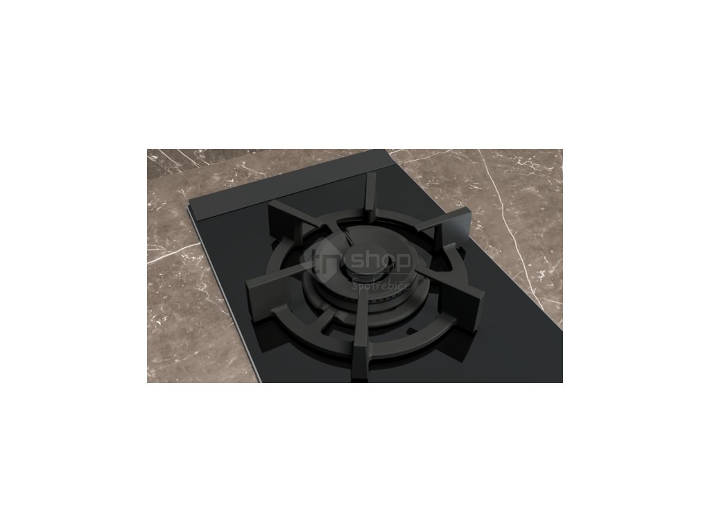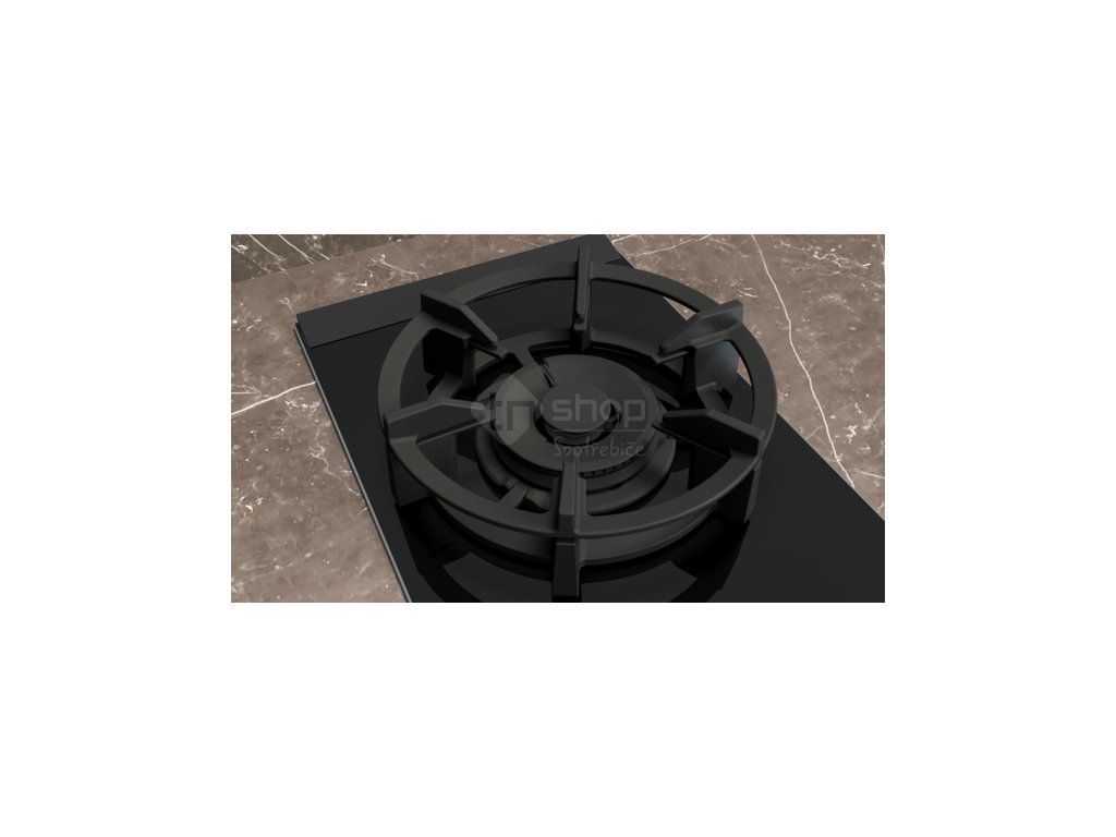 Plynová varná deska Domino z keramického skla s technologií stepFlame pro přesnou regulaci plamene, odnímatelnými otočnými volič a rošty vhodnými do myčky.