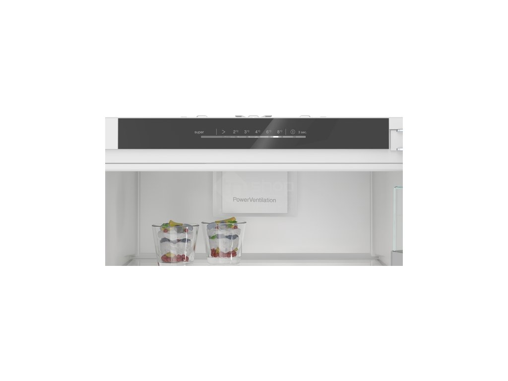 Vestavná chladnička s jasným LED světlem, zásuvkou hyperFresh <0 °C>, funkcí rychlého chlazení a tlumeným dovíráním dveří.