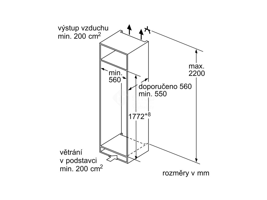 iQ500, Vestavná chladnička, 177.2 x 55.8 cm, ploché panty s jemným dovíráním