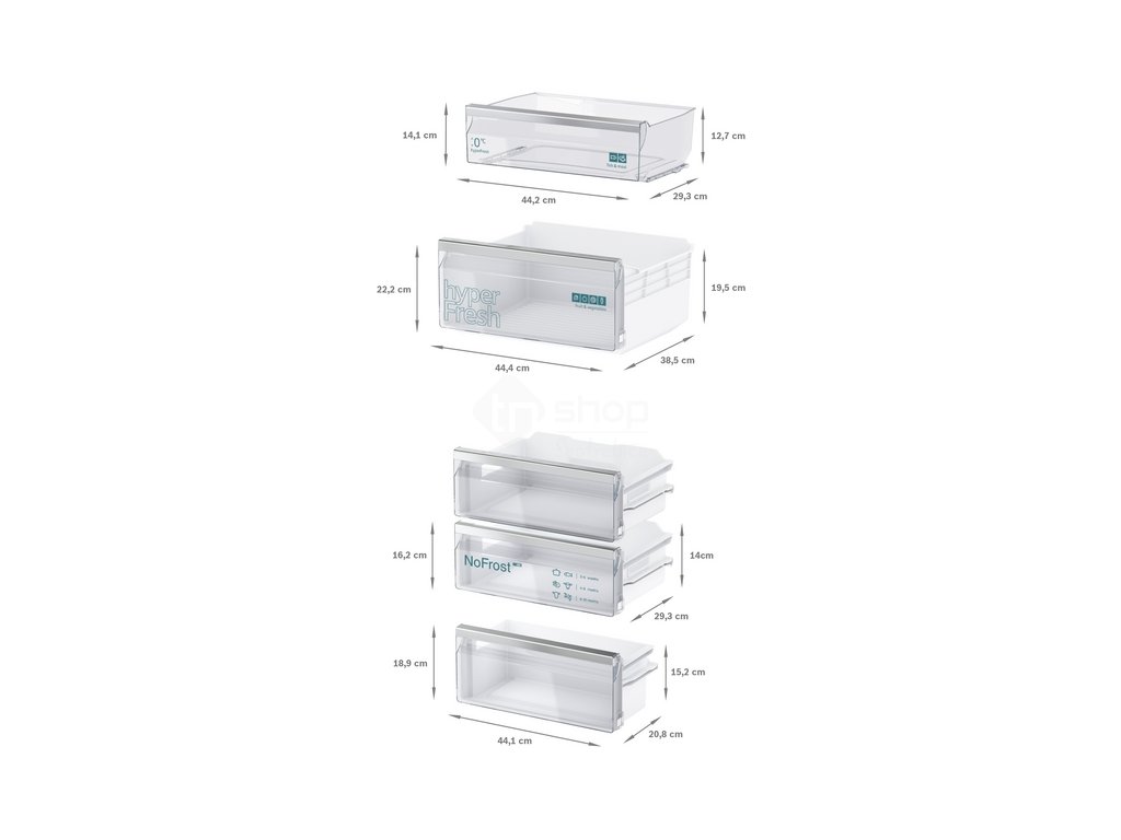 - hyperFresh <0 °C>: více prostoru pro ovoce a zeleninu. Chladné prostředí pro ryby a maso.