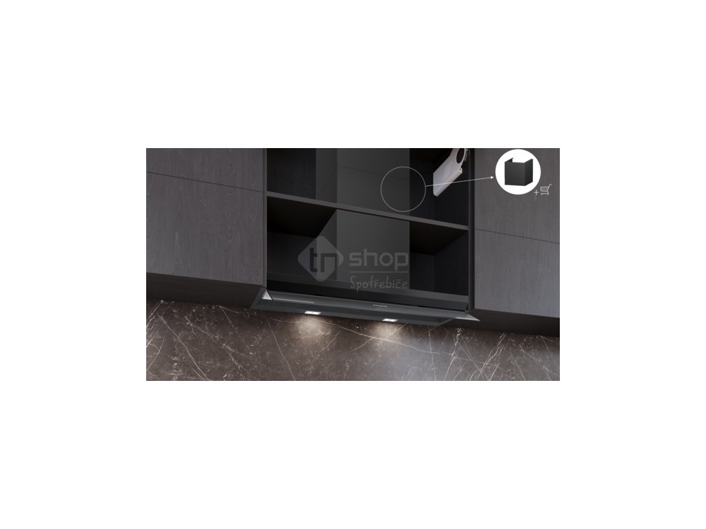Elegantní skleněný panel integrovaného odsavače par Siemens lze v případě potřeby vysunout dopředu a po složení se stane téměř neviditelným. Zatažením panelu dopředu se automaticky aktivuje odsavač par a světlo. Intuitivní ovládání je bezproblémově integrováno do skleněného povrchu. Během vaření panel pomáhá chránit povrch horní skříňky před stoupající párou a mastnotou – chrání povrchy a zlepšuje zachycování páry, a to jak stylově, tak funkčně.