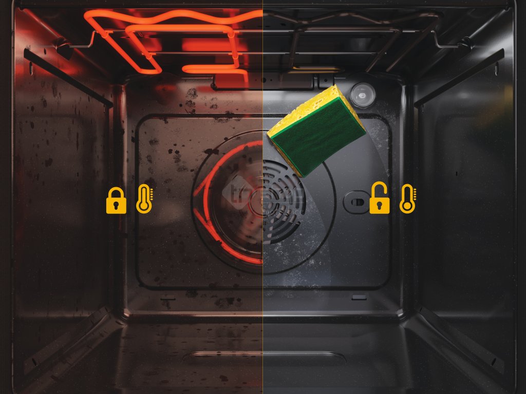 Žádné zbytky jídla. Technologie pyrolýzy je založena na vysokoteplotním cyklu, který spálí všechny stopy po přípravě jídla na popel, který následně snadno setřete hadříkem. Tepelně reflexní sklo na dvířkách trouby zajišťuje, že trouba zůstává zvenčí chladná na dotek, což ještě zvyšuje bezpečnost při pečení.