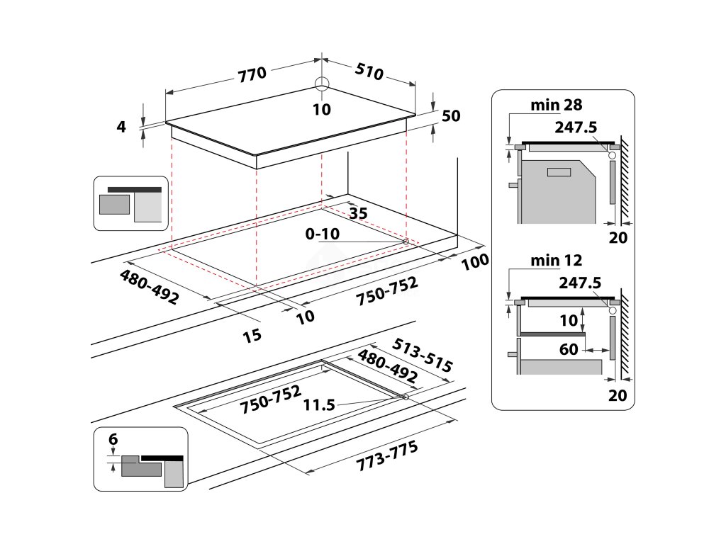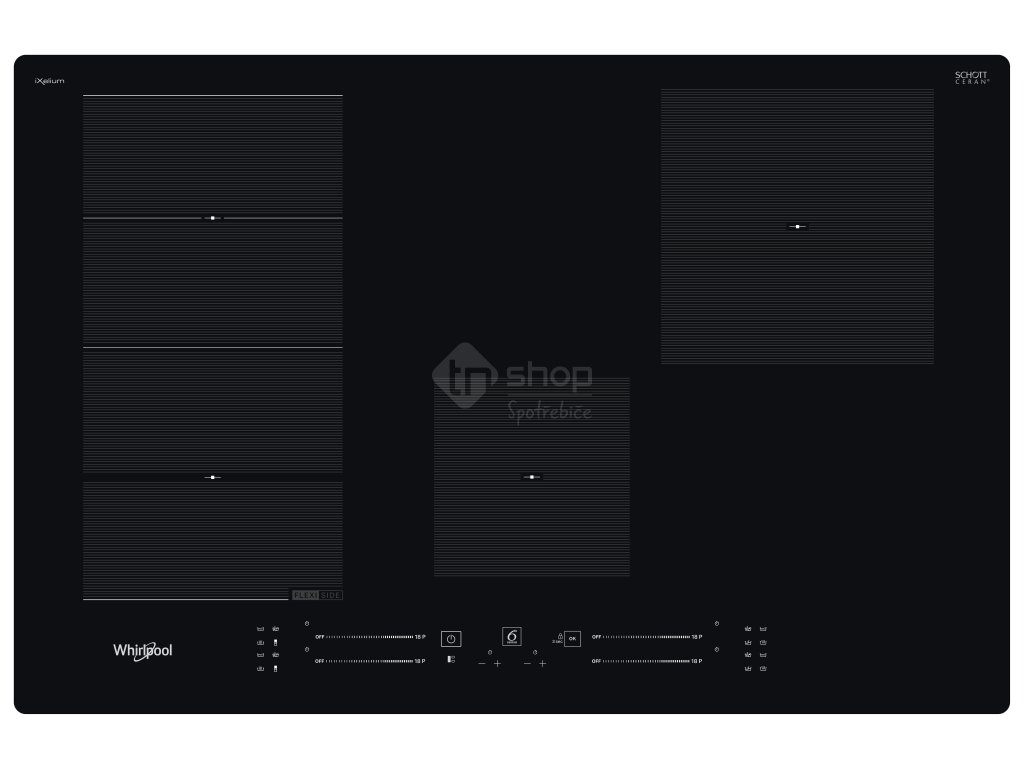 4 indukční varné zóny. technologie varných zón FlexiCook, která umožňuje spojit více zón do jedné pro větší hrnce a pánve. Slider pro snadné ovládání spotřebiče. Přednosti této indukční sklokeramické varné desky Whirlpool: Elegantní technologie, která ohřívá pánev, nikoli varnou desku, čímž snižuje rozptyl energie a zajišťuje dokonalé výsledky vaření. Elektrické připojení.