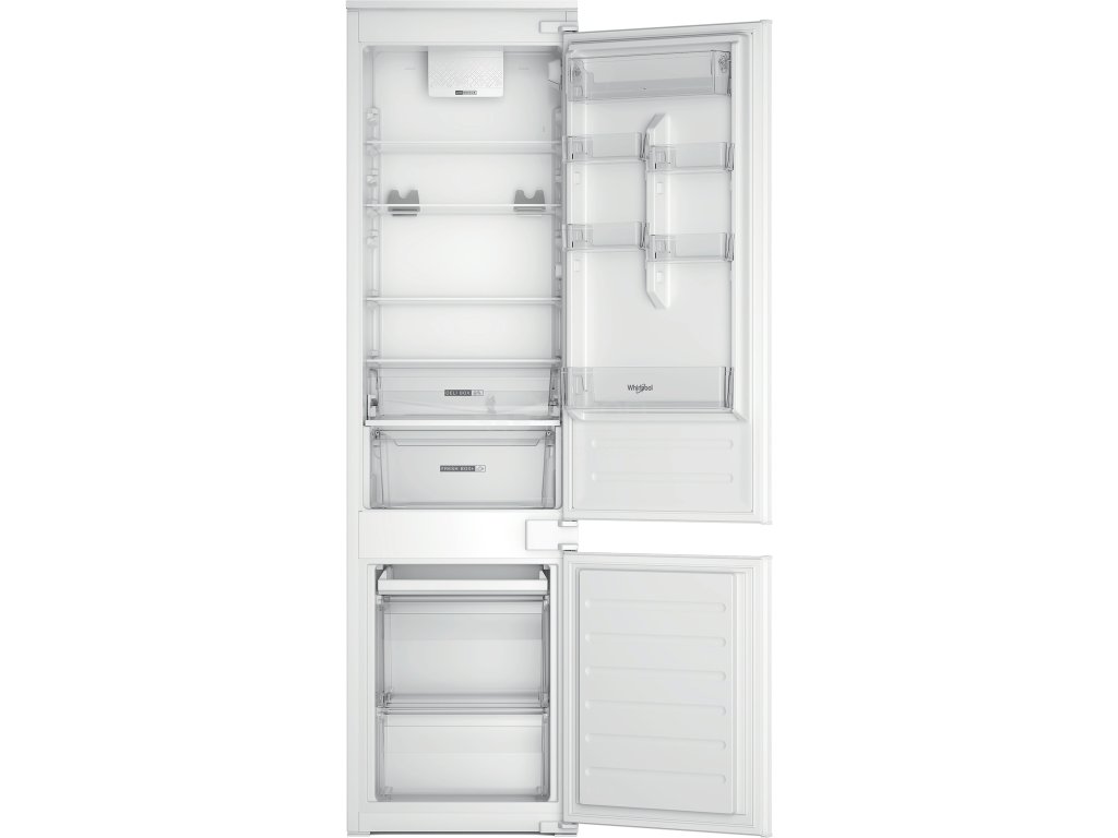 Přednosti této vestavné kombinované chladničky Whirlpool: bílá barva. Vysoký spotřebič, který vyhoví potřebám vaší rodiny. Skleněné police, které poskytují pevnost i eleganci. Ventilátor, který zajišťuje plynulé a rovnoměrné proudění vzduchu v prostoru spotřebiče pro doonalou cirkulaci vzduchu. Senzory 6. SMYSL, které automaticky snižují teplotu uvnitř spotřebiče po přidání nových potravin, čímž snižují spotřebu energie.
