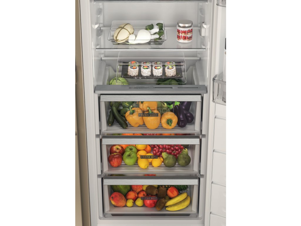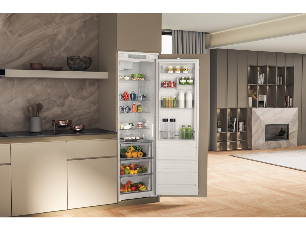 Přednosti této vestavné chladničky Whirlpool: vyhrazená přihrádka na lahve. Senzory 6. SMYSL, které automaticky snižují teplotu uvnitř spotřebiče při ukládání nových potravin, čímž účinně snižují spotřebu energie.