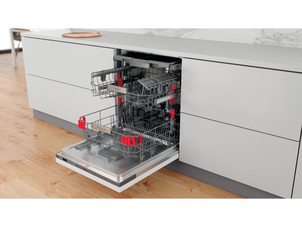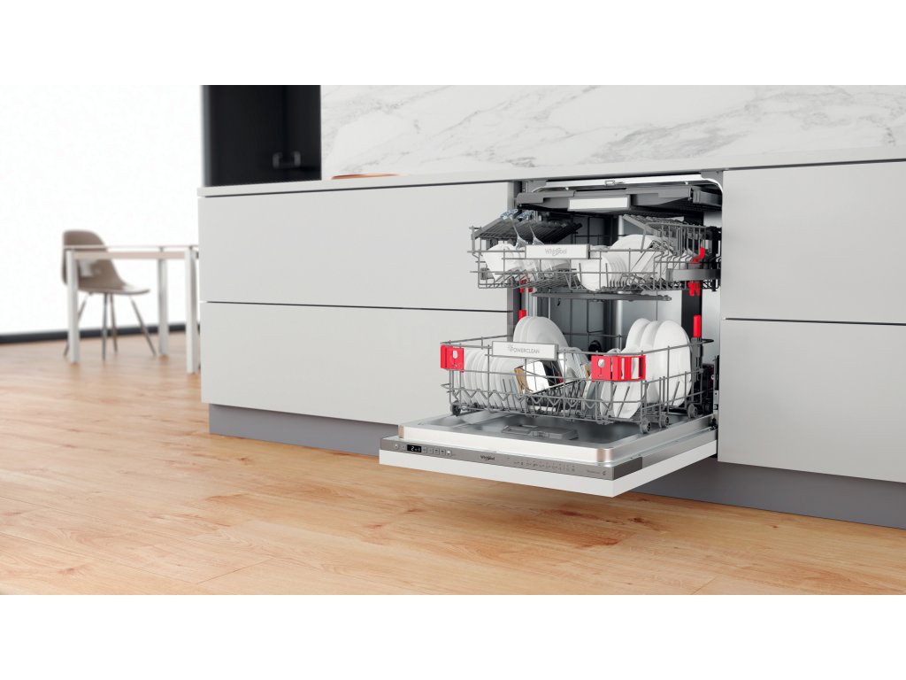 Vestavná plně integrovaná myčka nádobí Whirlpool: nerezová barva, široká - WIO 3O540 PELG. Přednosti této plně integrované vestavné myčky nádobí Whirlpool: nerezová barva. Vynikající energetická třída B se sníženou spotřebu energie. Nastavitelné nožičky, pro dokonalou stabilitu na nerovných podlahách a površích. Inovativní technologie zajišťující mimořádně tichý výkon, pro velmi tichý spotřebič. Vynikající mycí výkon pro ideální výsledky mytí.