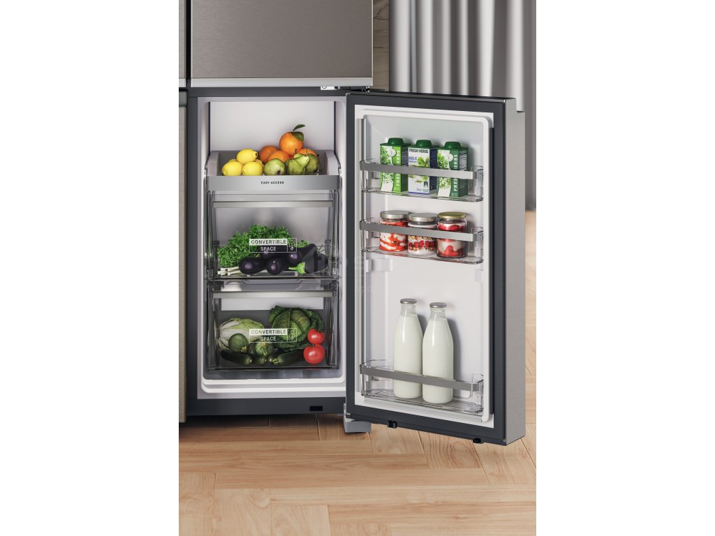 Rychlé chlazení. Teplota uvnitř chladničky se po uložení nových potravin okamžitě sníží. Vestavěné senzory automaticky upravují teplotu chlazení, čímž zajišťují nízkou spotřebu energie a delší čerstvost.