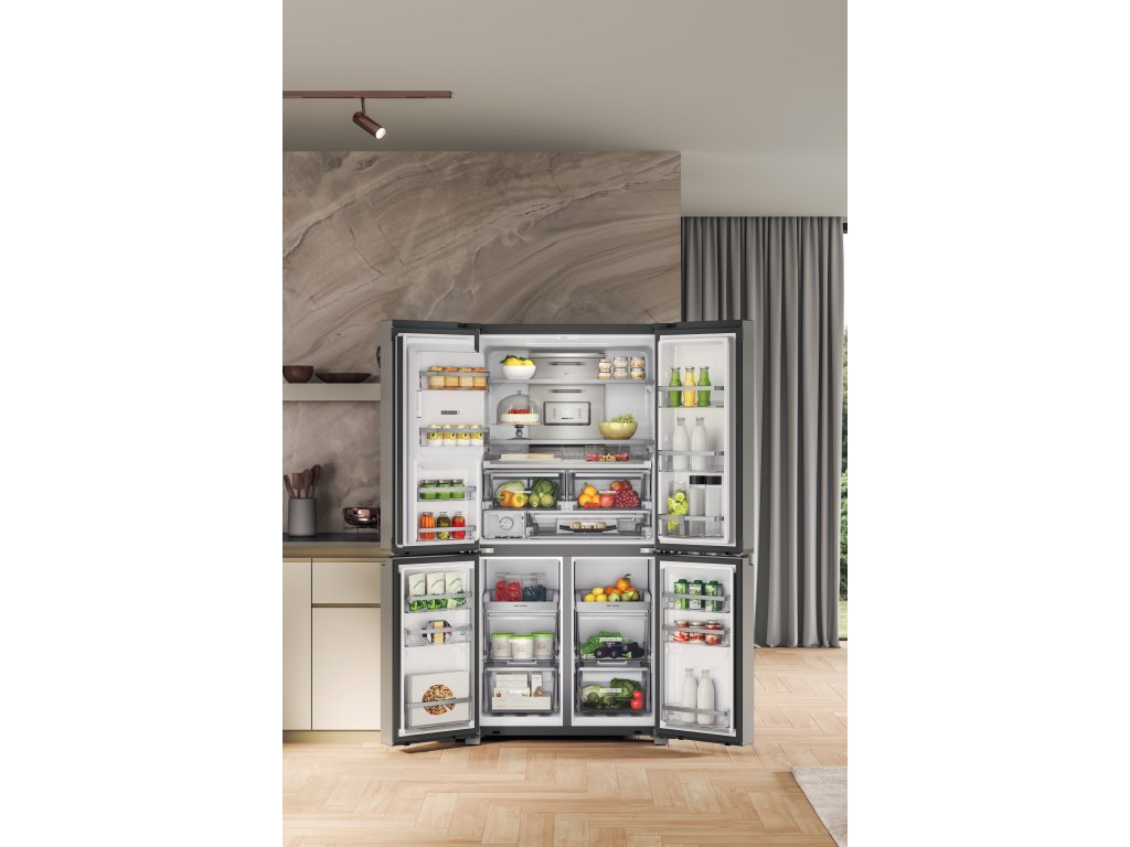 Tři nezávislé chladicí systémy NoFrost vytvářejí ideální beznámrazové prostředí pro skladování potravin, zajišťují ideální teplotu a vlhkost a zabraňují mísení pachů mezi chladničkou a dvěma mrazničkami.